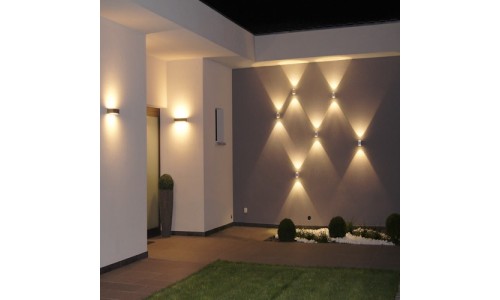 Aplique de pared fabricado en aluminio y difusor cristal templado. La fuente de iluminación es SMD LED. Este aplique con haz de luz en la parte superior e inferior es ideal para iluminación decorativa en jardines y terrazas.