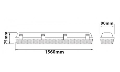 Pantalla estanca para 2 tubos LED de 1500mm, conexión 1 lado
