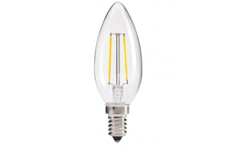 Bombilla LED vela lisa Clara E14 2W 2700ºKVLCE142W27F FILAMENTO, de alta potencia lumínica con un CRI mayor de 80, un factor de potencia del 0,92 y una duración de más 50.000 horas. Ahorra más de un 60% respecto de las luminarias de bajo consumo y con un 10% más de luminosidad. Encendido instantáneo, no parpadea, no hace ruido.  Son ecológicas porque no usan materiales contaminantes y reducen las emisiones de CO2 a la atmósfera. La solución ideal para lugares donde la luminaria está muchas horas encendida como parkings, ascensores, oficinas, tiendas, hospitales, etc. Para apliques, luminarias empotrar o de pie y cualquier aparato donde por las dimensiones de la lámpara se pueda instalar.