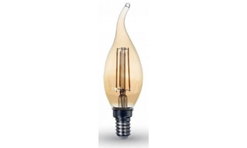 Bombilla LED vela lisa Gold Flama E14 4W Filamento 1800ºK VLGE144W18FFLAMA FILAMENTO.