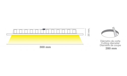Downlight panel LED Redondo 300mm Blanco 30W CCT seleccionable para empotrar DPR30WCCT. Ideal para falsos techos donde hay limitaciones de espacio. Podrá reemplazar a los clásicos downlight.