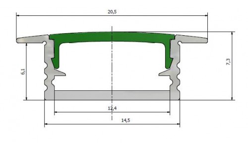Perfil Aluminio Empotrar 20,5x7mm. para tiras LED, barra 2 metros