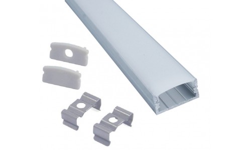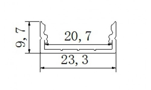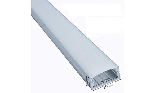 Perfil de aluminio de superficie de 23,3x10mm. Barra de 2 metros. Para tira LED El precio incluye: Tira perfil, 2 tapas finales, 2 grapas fijación y difusor.También realizamos montajes con tira de led según su necesidad. Consultenos!!