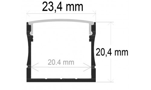 Perfil de aluminio de superficie de 223,4x20mm. Barra de 2 metros. Para tira LED El precio incluye: Tira perfil, 2 tapas finales, 2 grapas fijación y difusor. También realizamos montajes con tira de led según su necesidad. Consúltenos!!
