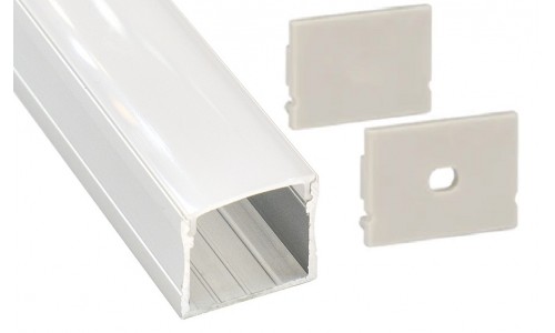 Perfil Aluminio Superficie 23,4x20mm. para tiras LED, barra 2 metros -Completo- (a 8,00€/mt)