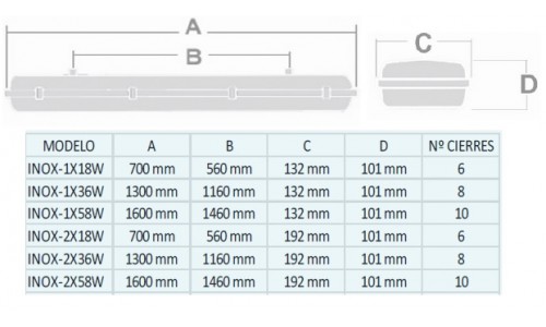 Pantalla estanca INOX PEV118I1C para instalacion de 1 tubo LED de 600mm