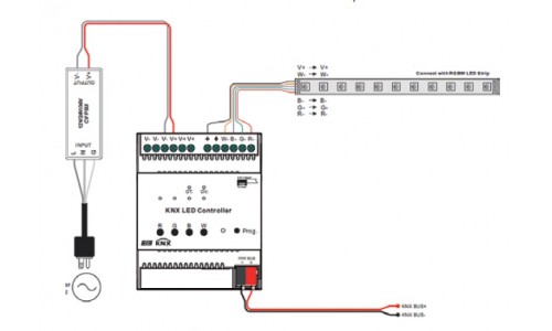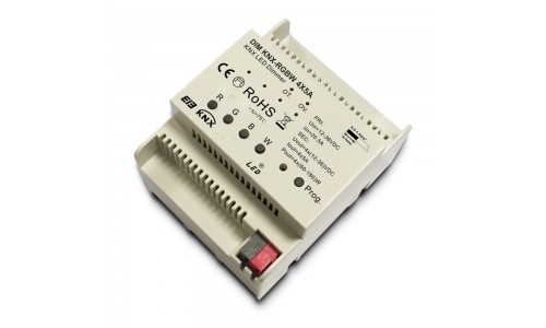 Regulador Controlador KNX para tira LED RGBW 12-24VDC 4 canales 5A RTLRGBWKNX4C5A. Alimentación desde el bus KNX para control. Se necesita fuente externa para alimentación tiras led.