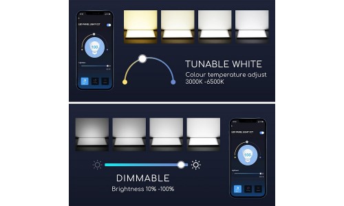 Panel LED 600X600mm 32W Marco Blanco SMART CCT Wifi, para Smartphone y control voz