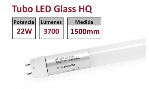 Tubo LED T8 1500mm Cristal 22W 3700Lm Blanco Frío, conexión 1 lado, Caja de 25 ud x 8,20€/ud