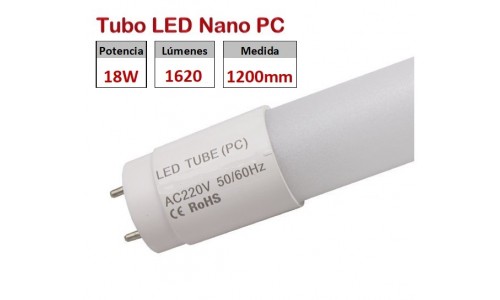 Tubo LED T8 1200mm Nano PC Eco 18W, conexión 1 lado