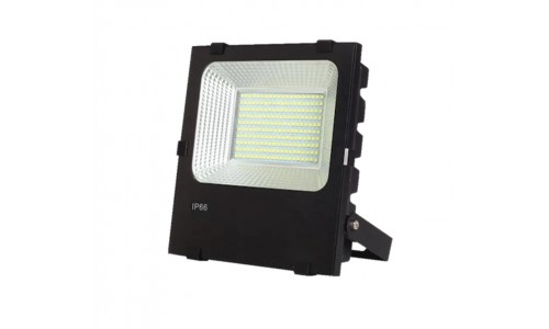 Foco Proyector LED exterior 100W IP-66, serie PRO-E FEPR100WE con carcasa compacta de aluminio de inyección, bañado en pelicula anticorrosiva que permite a el aparato soportar con mayor facilidad los ambientes agresivos, con