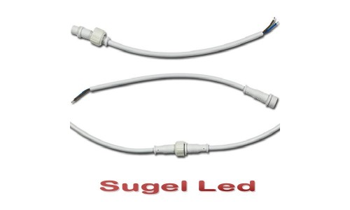 Conector Hembra resistente al agua, 2 pines para conexión de tiras de LED monocolor. Este conector con cable es necesario para conectar una tira LED nonocolor (2pin) a una entrada Macho.