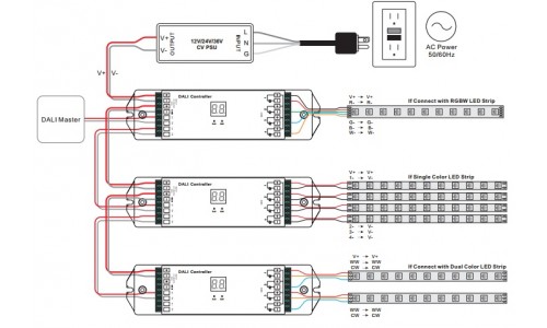 Receptor Controlador DALI para tira LED Monocolor, RGB y RGBW 12-36V 4 canales 4 direcciones 240-720W