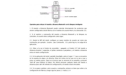 6. Tanto el mando a distancia así como el Smartphone pueden controlar el dispositivo inteligente Bluetooth con el nombre de usuario : Mesh y la contraseña : 123