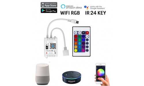 El controlador WiFi LED CRGB14424WIFIK24 está diseñado para las tiras de LED RGB. Después de una fácil instalación y configuración, puede utilizar el Smartphone para controlar la luz de las tiras led RGB .El controlador permite conectarse a dispositivos de Amazon Alexa (eco) y Google assistant para poder controlar su iluminación RGB desde estos dispositivos.