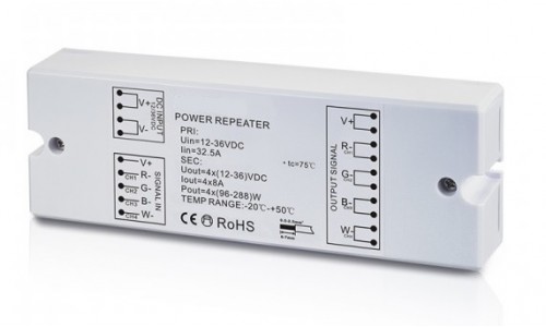 Amplificador Señal para Tira LED RGBW 4 canales 8A 12V-36VDC para voltaje constante