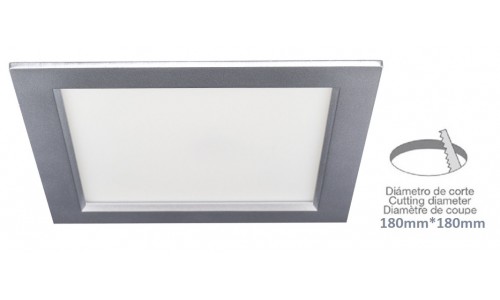 Downlight LED Cuadrado 220x220mm Gris Titanio 25W, Corte 180x180mm. para Techos Lamas