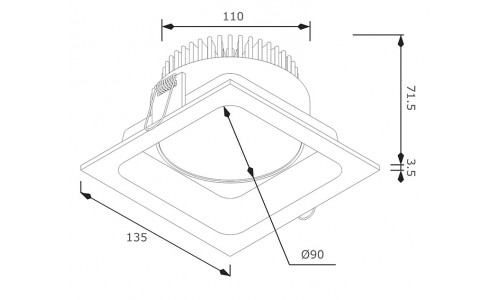 Foco Downlight LED Cuadrado Blanco empotrar 135x135mm 12W
