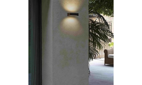 Aplique de pared fabricado en aluminio y difusor cristal templado. La fuente de iluminación es SMD LED de 28W y luz cálida. Este aplique con haz de luz en la parte superior e inferior es ideal para iluminación decorativa en jardines y terrazas.