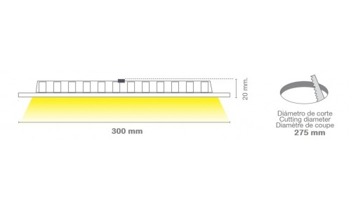 Downlight Panel LED Redondo extraplano 300mm Níquel 24W para empotrar DPRA24W. Ideal para falsos techos donde hay limitaciones de espacio. Podrá reemplazar a los clásicos downlight.