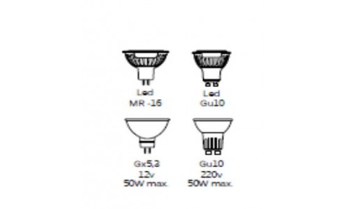 - Incluye portalámparas GU5.3 (para bombillas dicroicas 12V, con transformador). Si deseas usar bombillas directas a red, debes adquirir un portalámparas GU10.