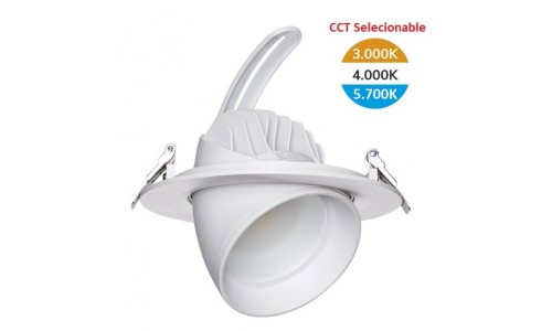 - Foco orientable empotrar LED SMD 38W CCT, corte 160mm, Blanco FOBSMDC38WCCT, fabricados con el más alto estándar de calidad, ideal para los proyectos más sofisticados y que necesitan un producto con las máximas garantías. Construidos en aluminio de alta calidad, con un acabado blanco mate ideal para cualquier ambiente. Incluyen un gran disipador de aluminio para alargar la vida de la lámpara led y un driver led de gran calidad. La instalación es sumamente sencilla, conectar y listo. Muy recomendado en entornos comerciales en los que se exige gran fiabilidad y rendimiento. Proporcionan una iluminación potente y homogénea, pudiendo elegir el tono de luz más adecuado a cada negocio. Todos nuestros Downlight cumplen las normativas vigentes en el entorno de la Comunidad Europea, tanto en especificaciones eléctricas como de sostenibilidad del medio ambiental y reciclaje.