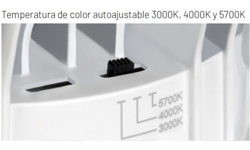 | Temperatura de color | CCT, Seleccionable 3000ºK, 4000ºK ó 5700ºK |