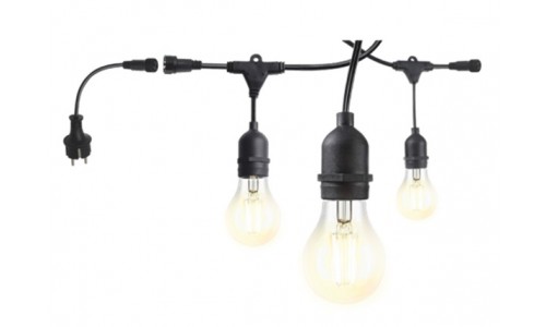 Guirnalda para 15 bombillas E27, separación 1 metro entre portalámparas colgante, protección IP54