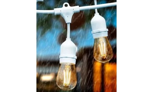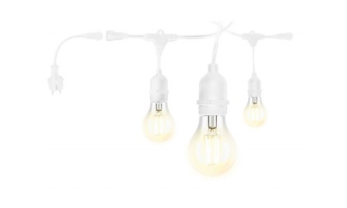 Guirnalda para 15 bombillas E27, separación 1 metro entre portalámparas colgante Blanco, protección IP54.