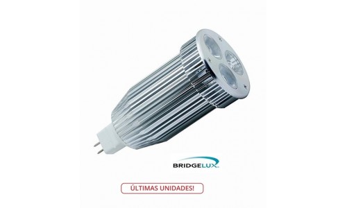 Bombilla de LED GU5,3 MR16 50x110mm 3X3, 12V, 9W, Blanca Fría, 528LM, 60º, MR163X3CW60, 3 leds con calidad de led BRIDGELUX, perfecta para iluminación de  interiores. Obtendrá un gran ahorro en consumo energético ya que consume hasta un 80% menos que una lámpara incandescente convencio. Este tipo de Dicroica  está especialmente indicada como fuente de luz de aplicación para iluminación interior, espacios cerrados y otros entornos interiores donde se requiera iluminación energéticamente eficiente para sustituir a los halógenos convencionales. Están especialmente indicadas para la instalación en comercios y establecimientos.