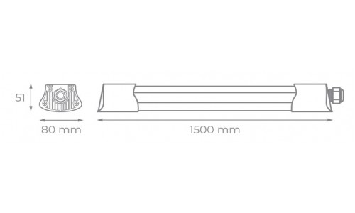 Regleta estanca LED IP65 PC 1500mm 50W 5000Lm REC1550W. Con cuerpo plástico estanco y cabezas desmontables. Prensaestopas en ambas cabezas para una fácil interconexión en líneas de 2 o mas Regletas lineales.