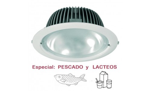Downlight LED Redondo Blanco 230mm 30W, corte 185mm, Especial Pescado ó Lácteos empotrables DRBSMD30WFISH de Barnaed están especialmente indicados para productos lácteos, resaltando su tonalidad de color. Son la mejor solución para iluminar el pescado y marisco, su característica principal es la capacidad de potenciar su brillo natural. Gracias a su CRI 90 los grises y azules se verán reforzados siempre respetando los rojos, ofreciendo una apariencia mucho más fresca y atractiva
