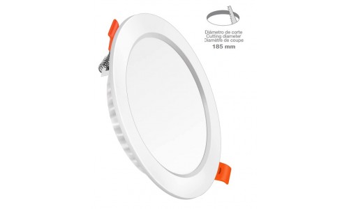 Downlight LED Redondo PRO 230mm Blanco 25W, Corte 185mm ideal Techos de Lamas para empotrar DR25WC185. Ideal para falsos techos donde hay limitaciones de espacio. Podrá reemplazar a los clásicos downlight.