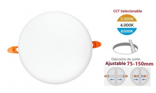 Downlight panel LED Redondo SIN MARCO 170mm 18W CCT corte ajustable 75 a 150mm