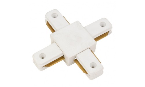 Unión X Blanca UXC2CB para carril monofásico para unir y alimentar cuatro tramos de carril en ángulo.