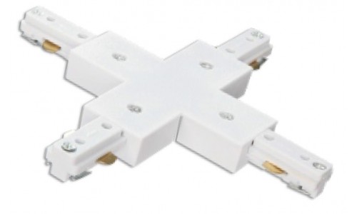 Unión T blanca UXC3CB para carril Bifásico para unir y alimentar cuatro tramos de carril en ángulo.