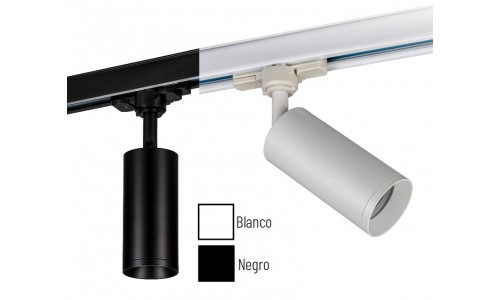 Foco Carril trifasico LED Blanco ó Negro, Lámpara GU10 FCTGU10C de alta calidad para incorporar lámpara LED GU10 y adaptador a carril trifásico integrado. Solo hay enchufarlo y listo Los focos giratorios de Carril LED están especialmente diseñados para cubrir las necesidades de un usuario exigente que precisa de luminarias que realcen elementos decorativos concretos, fomentando la creación de múltiples ambientes. Todos los modelos requieren de raíles para la instalación. Usos y aplicaciones para focos de carril: Salas de exposiciones, habitaciones con diferentes ambientes, salones, espacios laborales amigables y en general a espacios siempre cambiantes y que requieran de proyectar luz a objetos concretos.