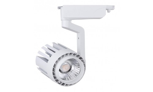 Foco Carril Monofásico LED COB 30W Blanco FCMCOBLN02B30W para carril monofásico orientable en todas direcciones y fabricación de alta calidad en aluminio y lacado en color blanco.