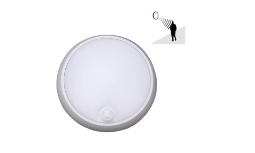 Plafón ó Aplique LED de Superficie redondo Ø170x57mm Gris 8W IP54 con Sensor PFSRG8WIP54DM, de iluminación directa con difusor opal está diseñada para aplicaciones de iluminación general tanto comercial como doméstica. El ahorro energético de estas lámparas comparadas con sistemas tradicionales de iluminación es de hasta el 90%.