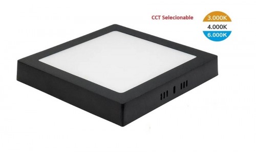 Downlight Panel LED Cuadrado Superficie Negro 18W CCT DPQSN18WCCT. Ideal para techos o sitios donde hay limitaciones de espacio.