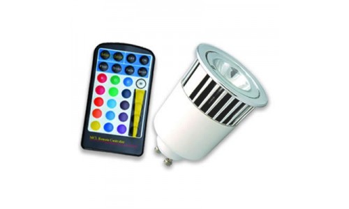 Lámpara LED GU10 50x70mm RGB, 230V, 5W, con mando a distancia GU105RGB, RGB multicolor aporta una iluminación suave y diferente al ambiente con diversos toques de color. Este foco está funciona a traves del mando programador para cambiar de color o relaizar una programción personalizada. Es ideal para iluminar pequeños espacios que desea destacar de manera divertida. Puede convertir su jardin en un lugar de fantasia, y bañar sus plantas y flores en distintos colores. Añada un toque de distinción, o simplemente realizar un cambio de bombilla en Lámparas para fiestas estacionales como fiestas o navidad.