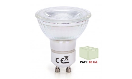Bombilla LED GU10 COB Cristal 7W 38º Retro, Caja 10 ud GU10COB7W38RP10, perfecta para iluminación de interiores.