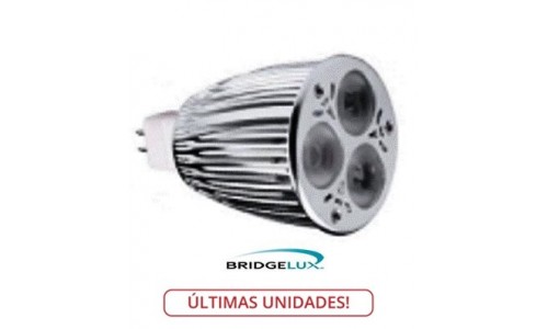 Bombilla LED GU5,3 MR16 50x80mm 3X2, 12V, 6W, 4000ºK, 384LM, 60º,BRIDGELUX, MR163X2NW60, de 3 leds  con calidad de led BRIDGELUX, perfecta para iluminación de  interiores.  Ideales para sustituir tus actuales lámparas dicroicas retirando el transformador sin la necesidad de cambiar el portalámparas. Obtendrá un gran ahorro en consumo energético ya que consume hasta un 80% menos que una lámpara incandescente convencio. Este tipo de Dicroica  está especialmente indicada como fuente de luz de aplicación para iluminación interior, espacios cerrados y otros entornos interiores donde se requiera iluminación energéticamente eficiente para sustituir a los halógenos convencionales. Están especialmente indicadas para la instalación en comercios y establecimientos. ¡Precio promoción especial hasta fin de Existencias!