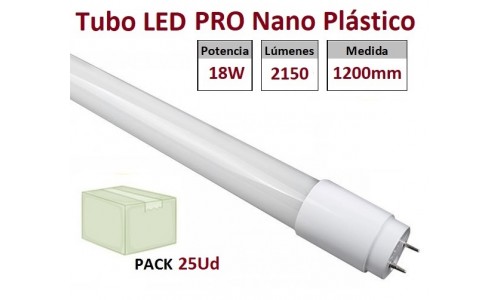 Tubo LED T8 1200mm Nano PC 18W, conexión 1 lado, Caja de 25 ud x 4,88€/ud.