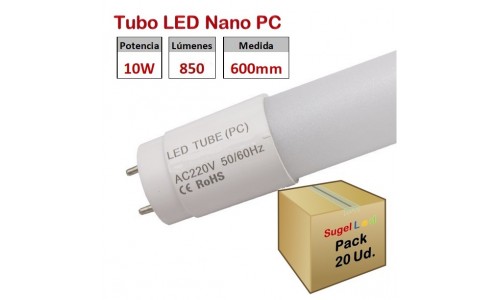 Tubo LED FT8PC0610WE20 T8 600mm Nano PC Eco 10W, conexión 1 lado, Caja de 20 ud. Tubo fabricado con nuevos materiales de Nano plástico, gran calidad, altamente resitente.