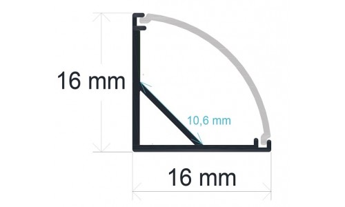 Perfil de aluminio en ángulo de 90º 16x16mm. ECO anodizado Plata Barra de 2 metros -completo- PA1616EDCK2M10. Para tira LED de ancho máximo 10mm y no superior a 20W/mt.