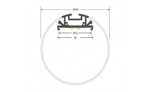 Perfil Aluminio anodizado Eco con difusor Redondo 60mm. para tiras LED, barra 2 Metros - completo, desde 15,00€/mt