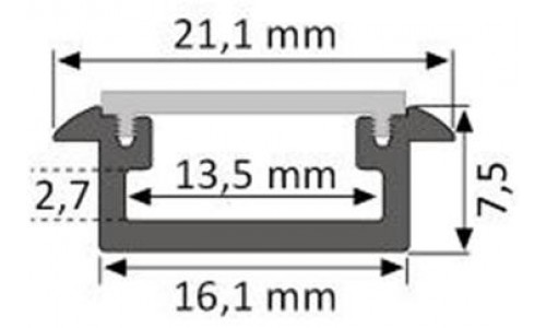 Perfil Empotrar de aluminio anodizado en plata de alta calidad, de 21x8mm. PE2108A. Barra de 2 metros. Se puede escoger el tipo de difusor entre opal, glaseado o transparente. Para instalar tira de LED. Podemos hacer cortes a medida. También realizamos montajes con tira de led según su necesidad. Consultenos!!
