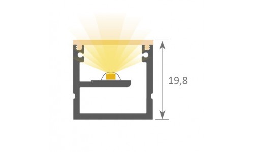 Perfil Superficie de aluminio anodizado Negro de alta calidad, de 20,4x19,8mm. PS2020AN. Barra de 2 metros. Se puede escoger el tipo de difusor entre opal, glaseado, transparente ó Negro. Para instalar tira de LED. Podemos hacer cortes a medida. También realizamos montajes con tira de led según su necesidad. Consultenos!!
