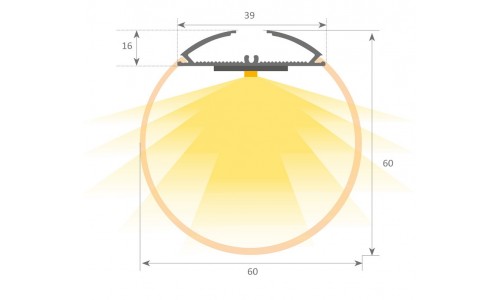 Perfil Aluminio anodizado para difusor Redondo 60mm. para tiras LED, barra 2 Metros
